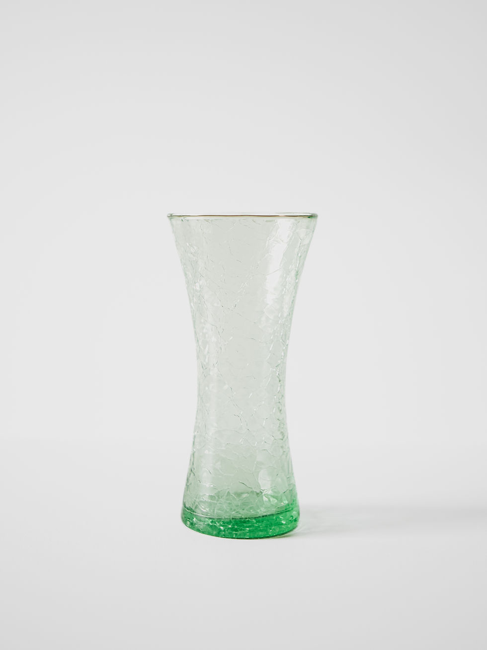 Green Cracked-Glass Vase / Minimal Form with Signature Texture